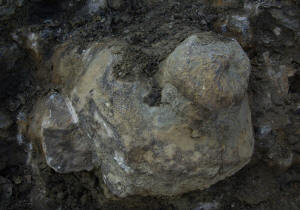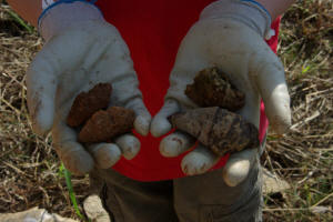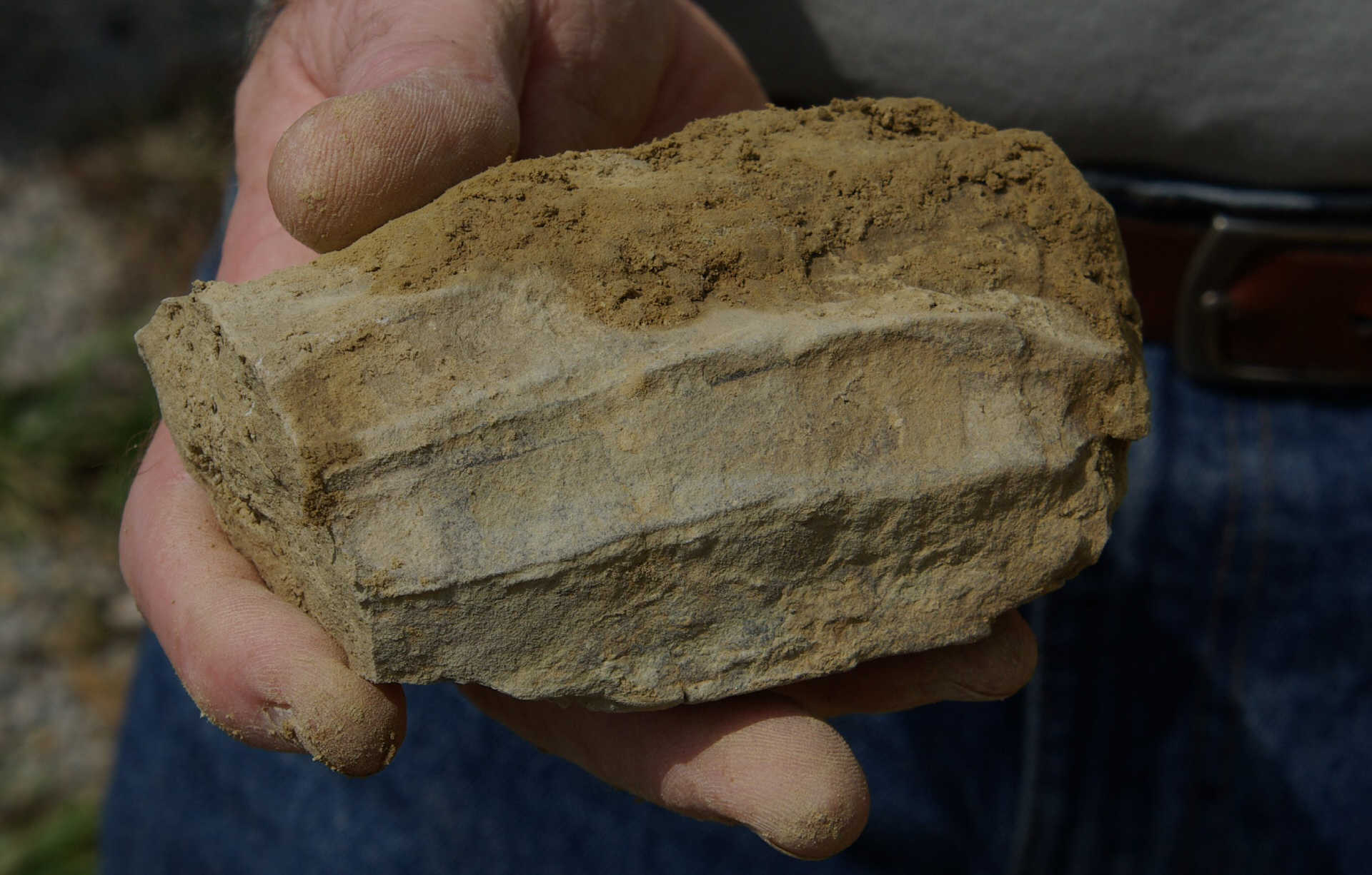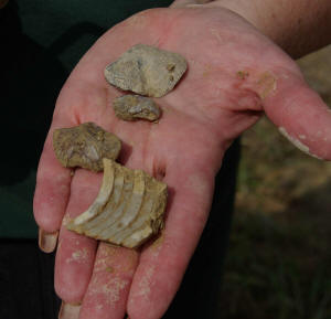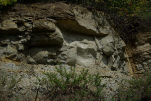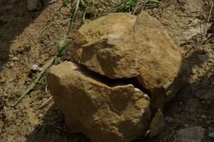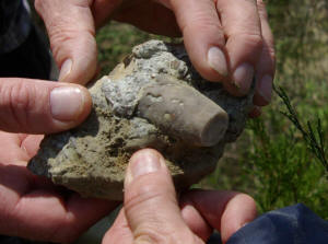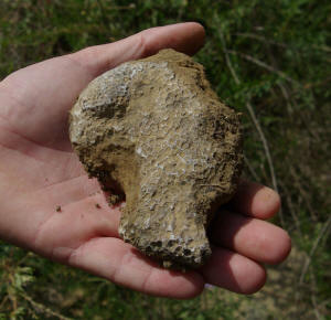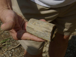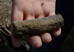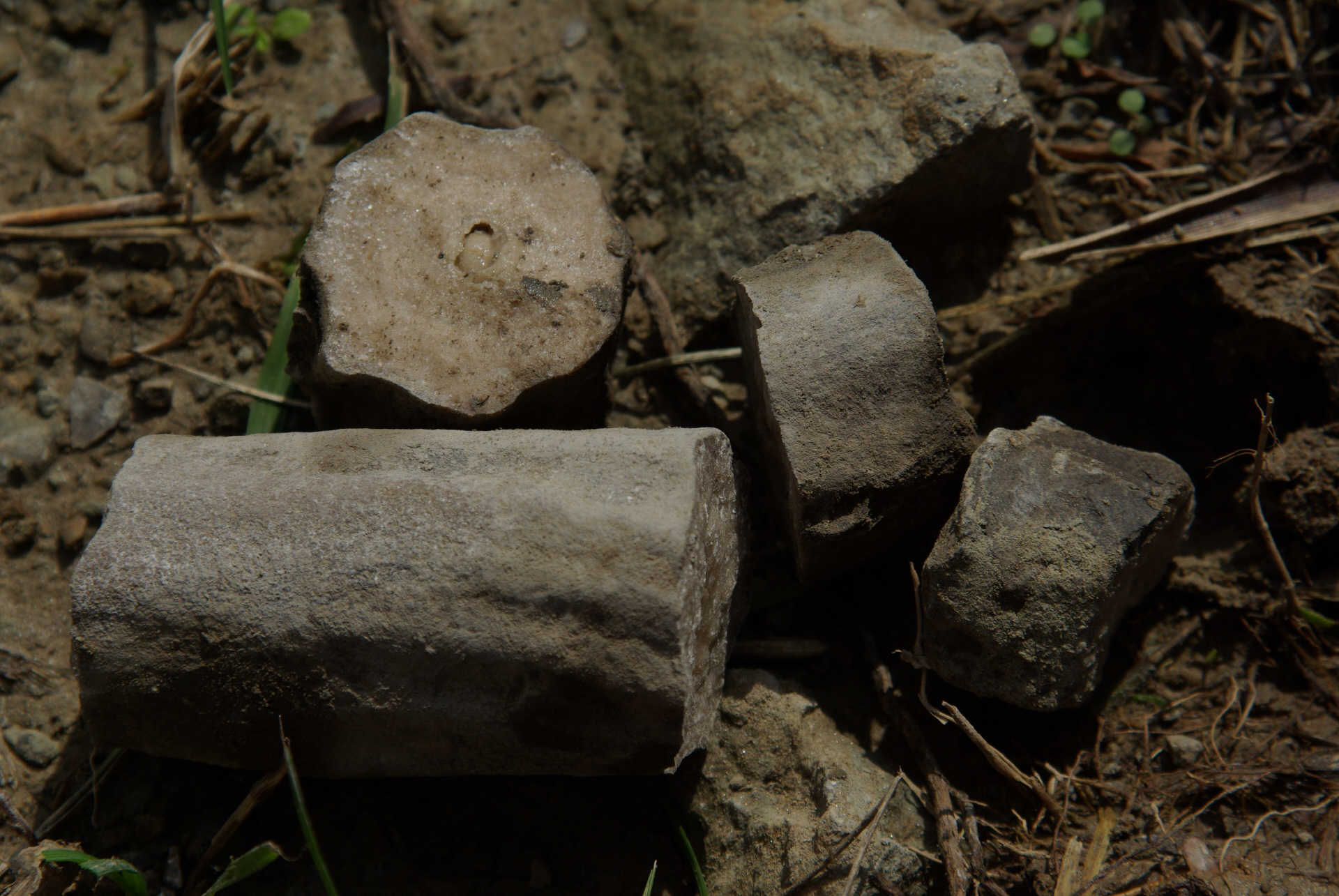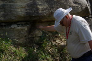 The first site exposes the Bardstown member of the Drakes formation, which is upper Ordovician. Here we found lots of corals. We also found a few stromatoporoids. Most of the large coral heads were sitting loose waiting to be picked up. Others were acquired by "popping" them out of the hill side.