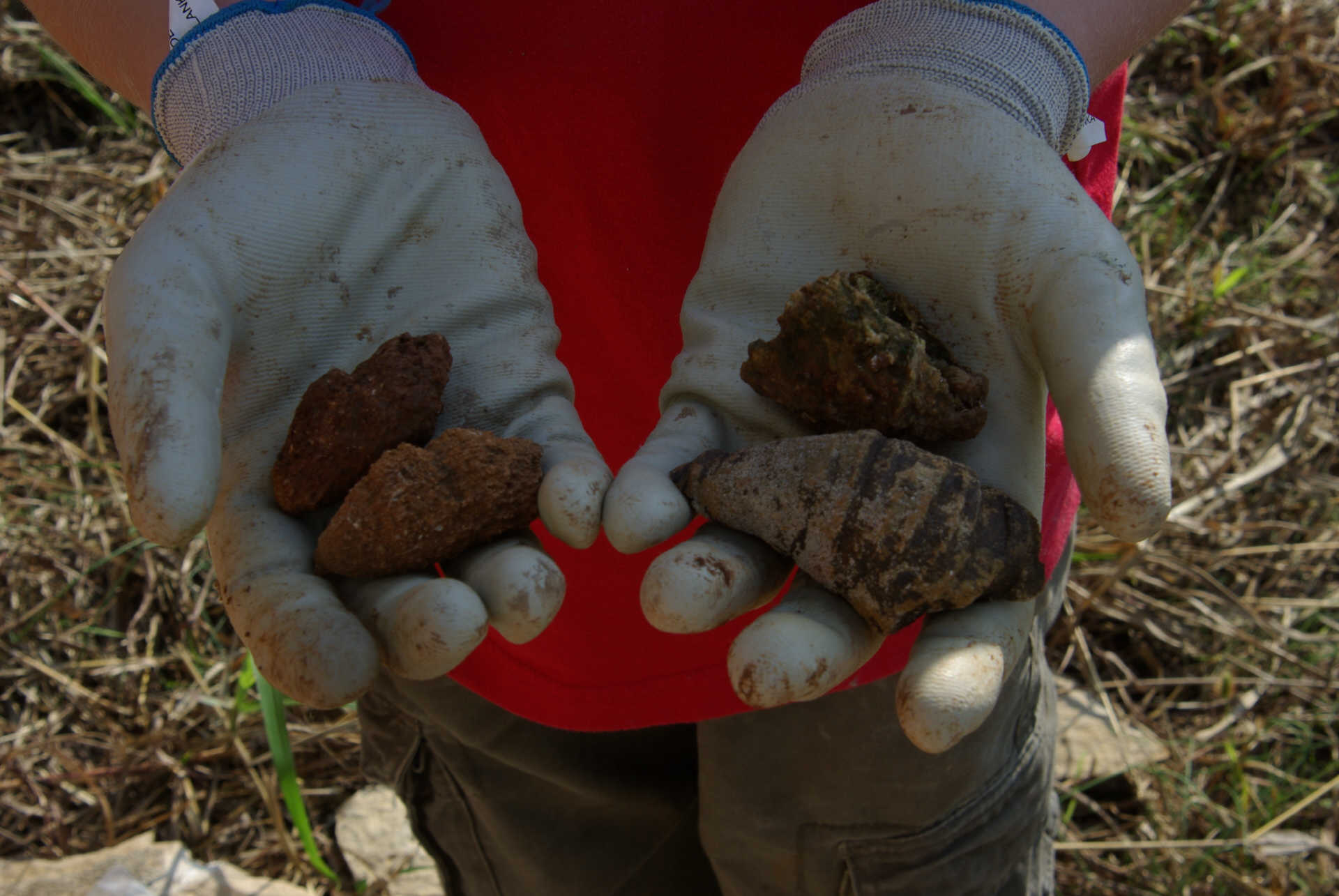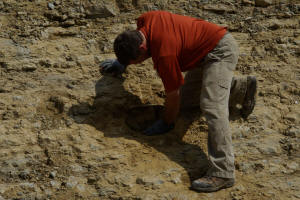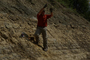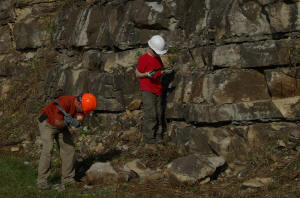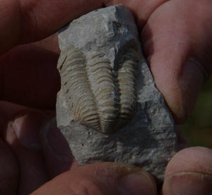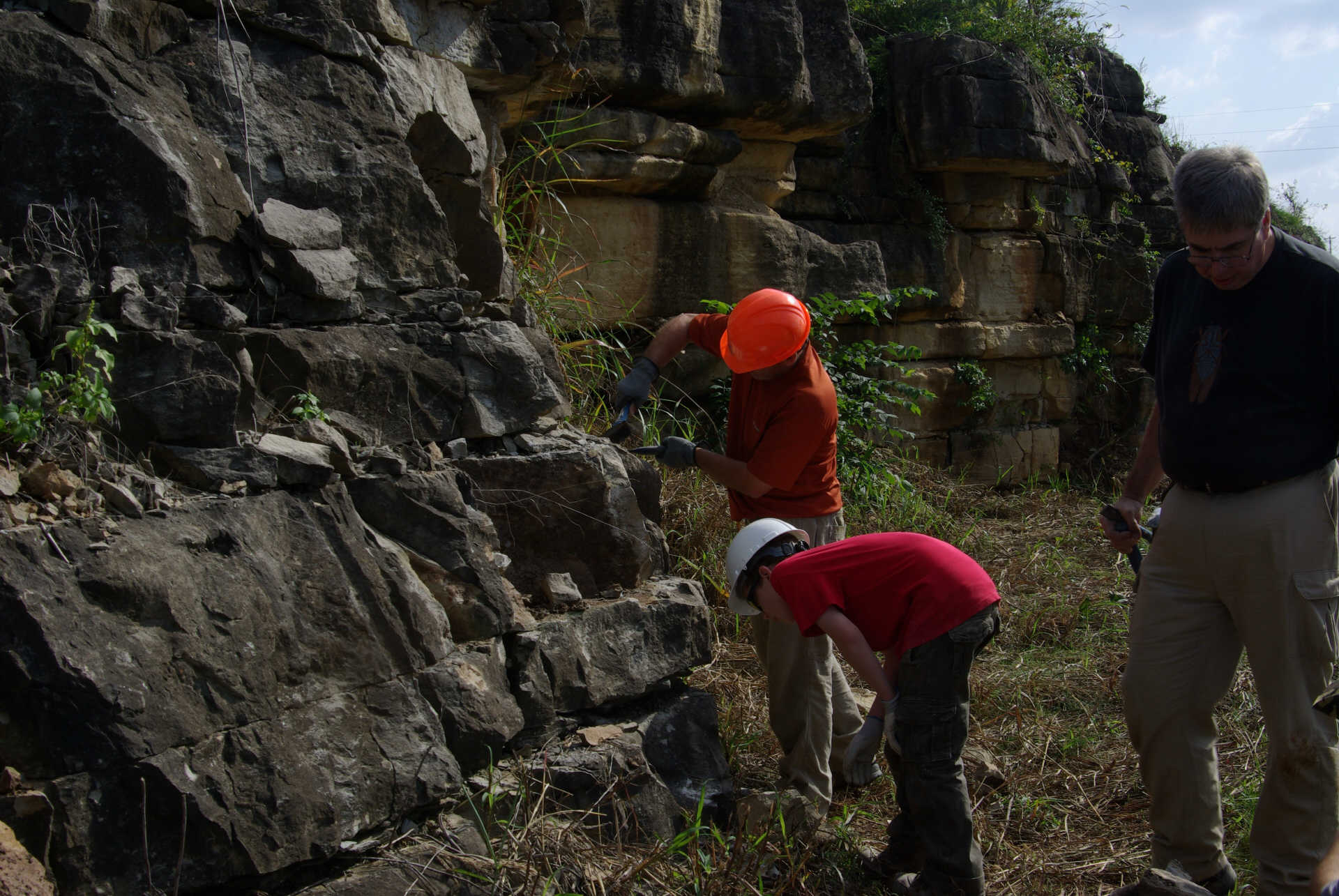 The third site we visited that day exposed the Silurian. There we armed ourselves with hammers and safety goggles to extract Silurian trilobites from the dolomite.