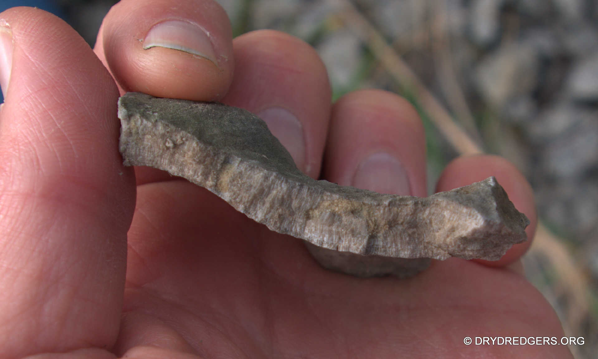 Bryozoans were found encrusting all kinds of fossils. This first fossil looks