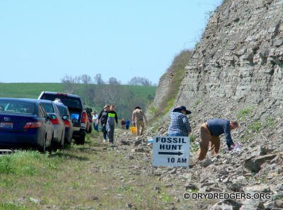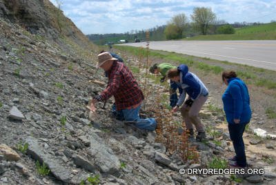This locality was going to be the March 2018 Dry Dredgers field trip, but that trip was canceled due to winter weather. Spring came late, but we had great weather when we returned in April. Matthew Speights led this field trip. It was such a good site and the weather was so good, that we fossil hunted for 4 and a half hours and investigated three different road cuts.