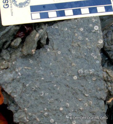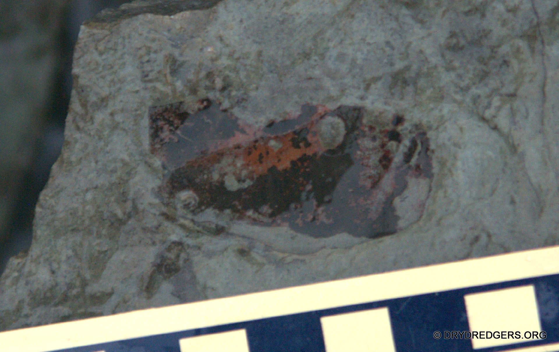 were also found. Here's a nice internal mold on the surface of a rock with black