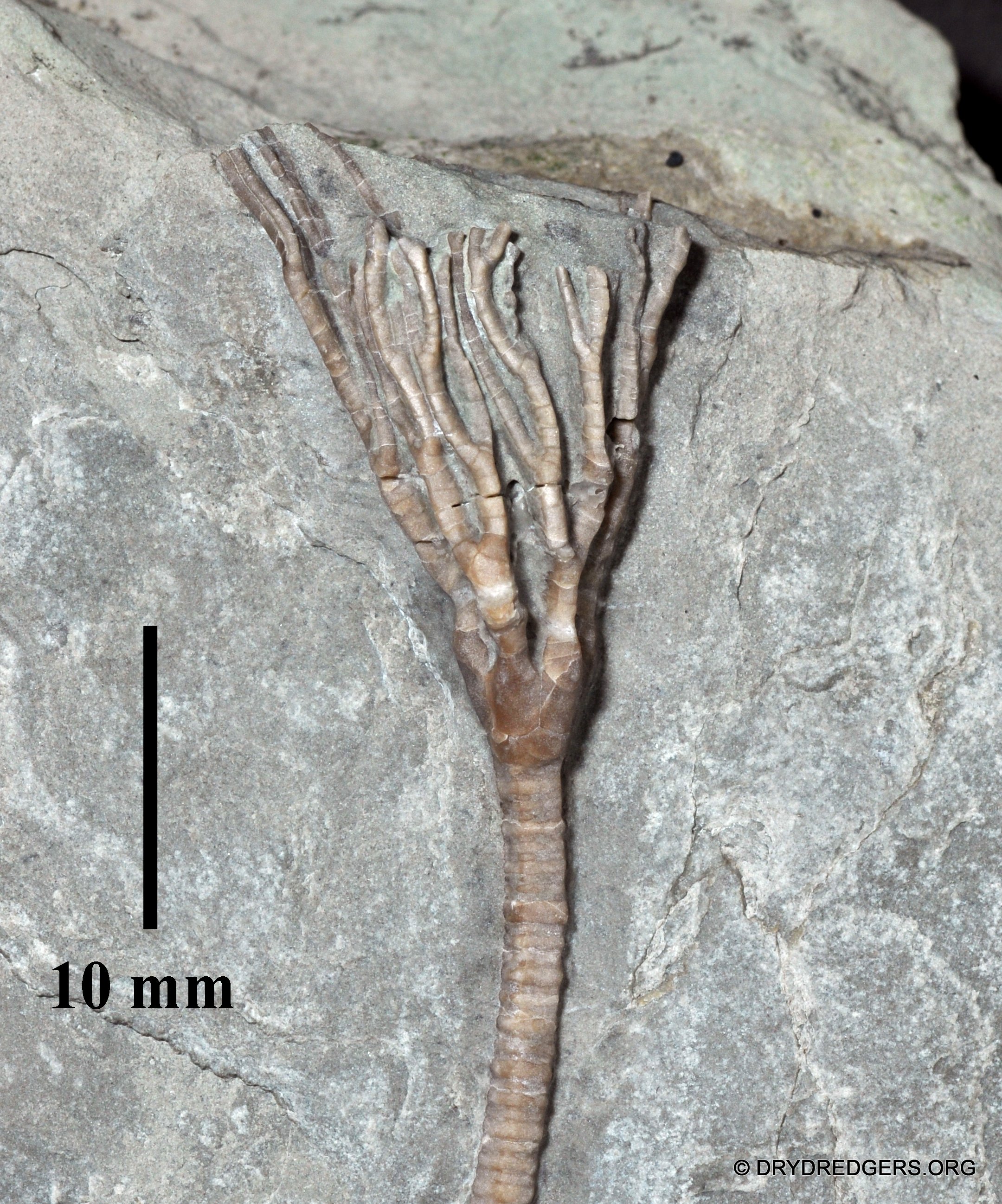 Cincinnaticrinus varibrachialus 5 mm scale. Photos by Jack Kallmeyer |