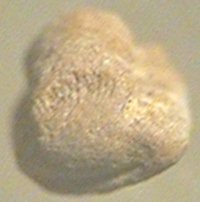 This is a nearly complete specimen of the Rhombiferan Cheirocystis fultonensis was found that the base of the Kope Formation Fulton Beds (left and right sides shown above). It is missing the stem. The specimen has not been prepared and so is covered with matrix. As of this writing, less than a dozen complete specimens of this species have been found and so each specimen is of scientific importance. This one was found by Bill Heimbrock in March 2001. Note the ambulacra exposed at the top of the specimen.
