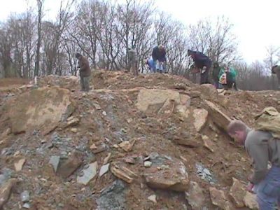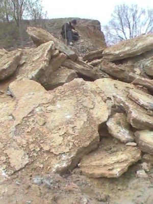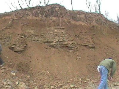 We continued our tour of the Corryville Formation with a second site that was once a hill cut coldesac. This one was also famous for good quantities of Flexicalymene trilobites before the hill had been razed this past year. This site has also been weathered over the winter and the expectation is for nice specimens of trilobites as well as crinoids.