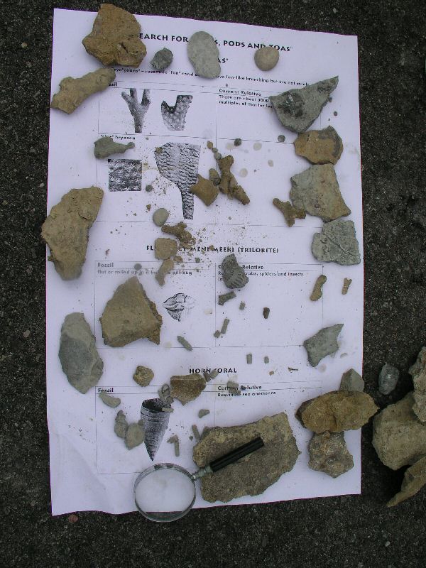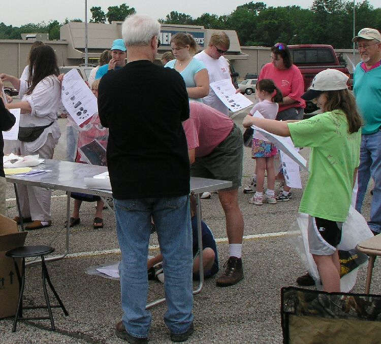 The Dry Dredgers were in their element at our annual public kids fossil hunt called the "Search for Noids, Pods and Zoas!" for 2005.This will be the third year for this new annual event, held in memory of our long time members, Hank and Laura Barton. The turn out this year was a bit light compared to last, due largely to the overcast sky and forecasted rain. It didn't rain, though, and it was obvious that everyone who attended had a wonderful time, with the best give-always and the best fossils found of any other year.