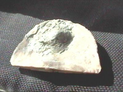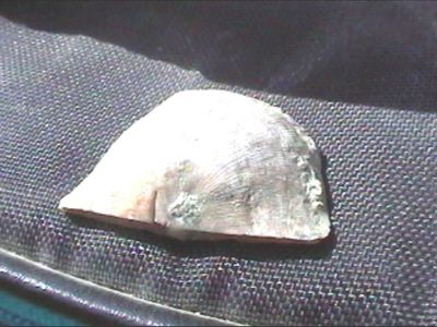 Now here is the brachiopod found at the September field trip to Route 1. (Below showing both sides.) Look closely because the pictures are not very good. Can you tell if it is a Strophonema or a Rafinesquina?