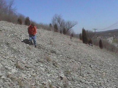 The weather was perfect; sun and pleasant temperatures. And we had a good turnout. (I didn't get a count). There has been a lot of weathering of the shale on this site due, in part, to the fact that we had plenty of rain this winter.