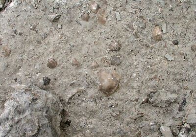 The rocks, like the one below, are covered in the Brachiopods, Rafinesquina,