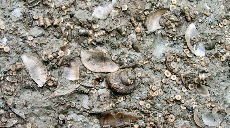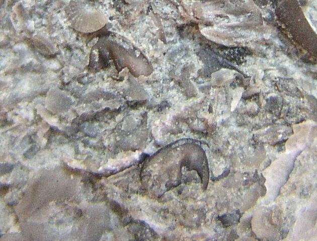 A hand lens, on this site, is an essential tool for finding all kinds of interesting fossils. This rock (below) had a number of Ostracodes on it!