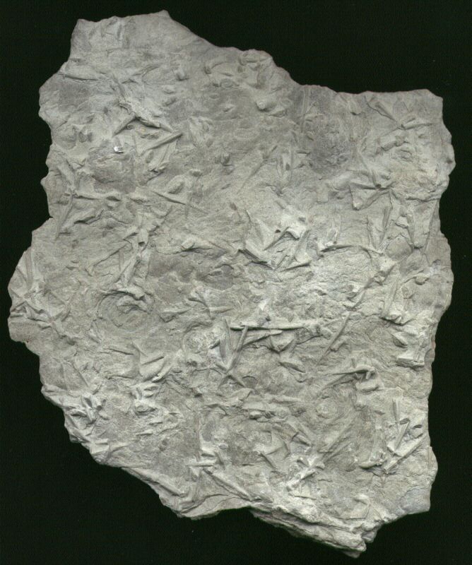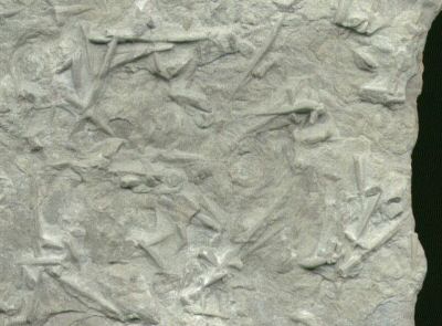 trace fossils. The traces are of varying shapes and types. On the sample below,