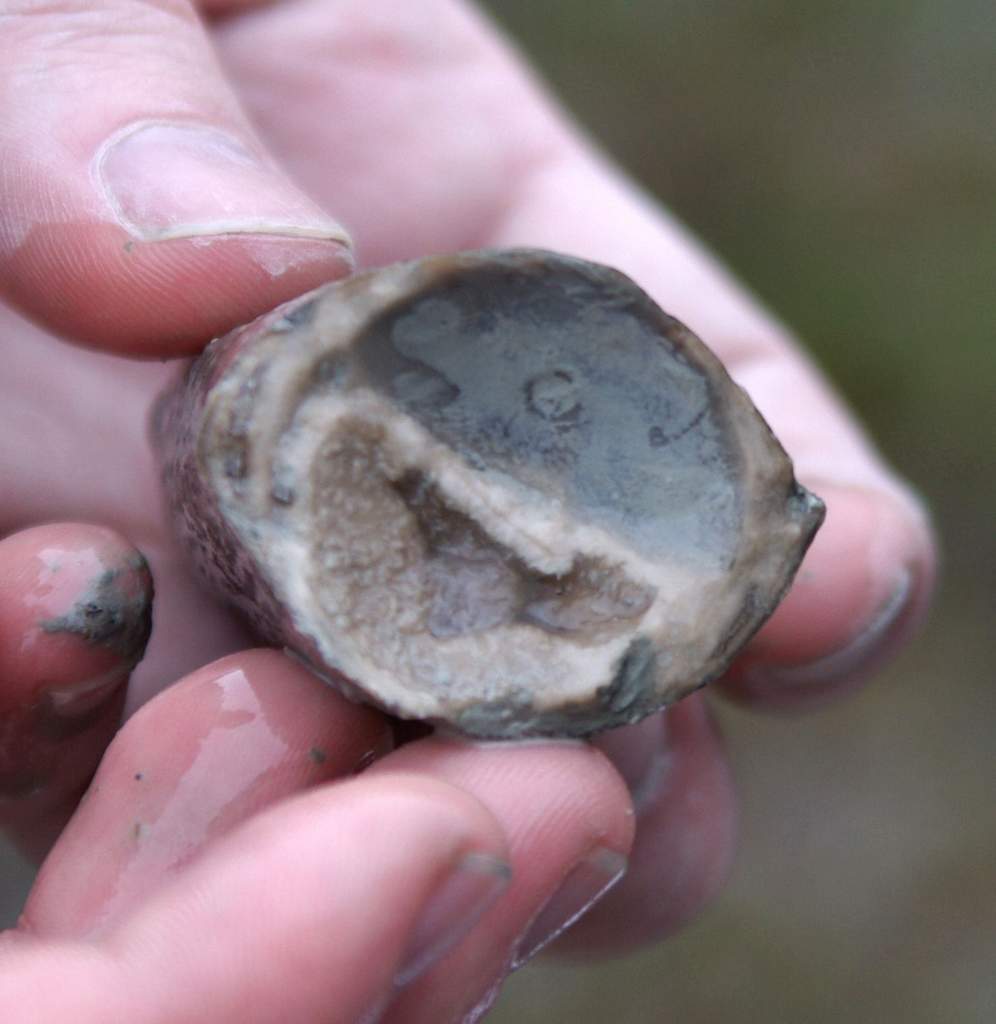 shell. Usually, one side is filled in with sediment and the other by calcite.