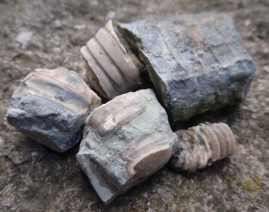 Quite a few "log jams" were also found. This is a dense population of articulated crinoid stems.