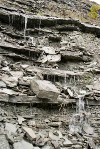 This site exposes a layer of the articulate brachiopod Strophomena, which is found abundantly in