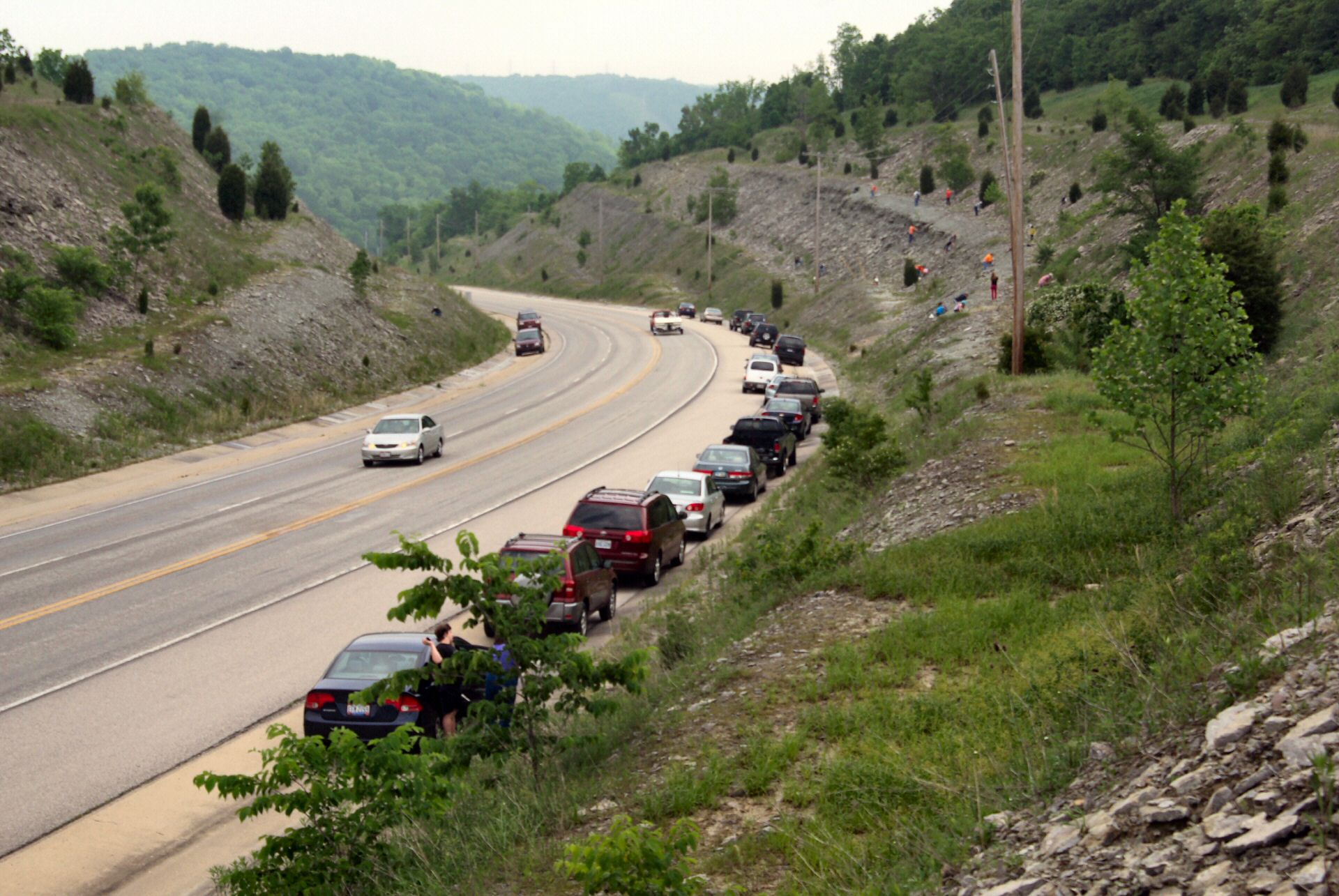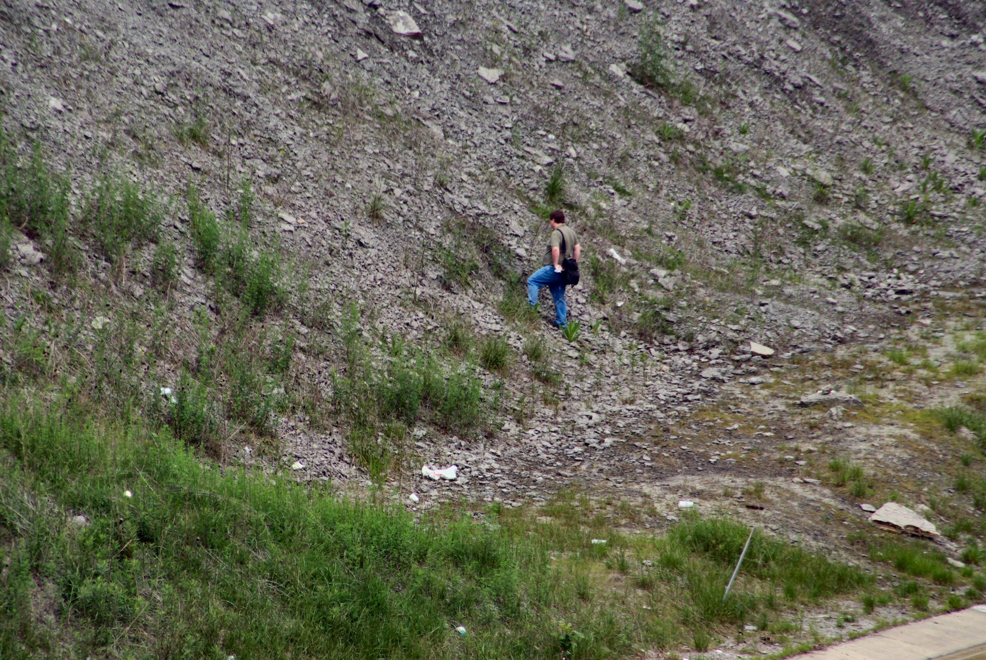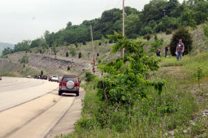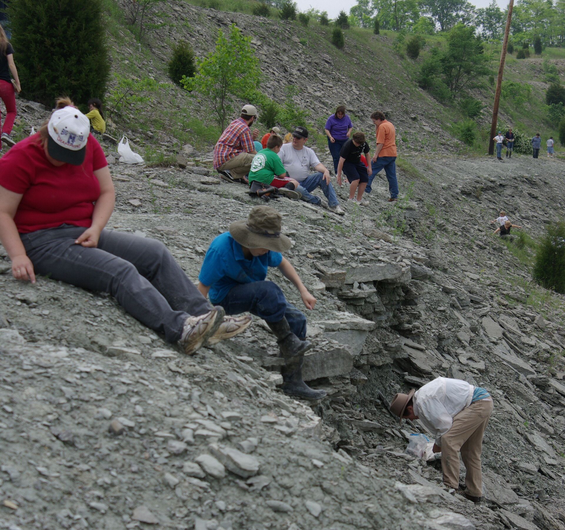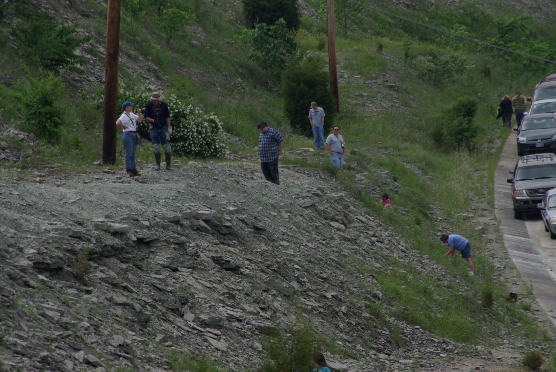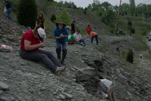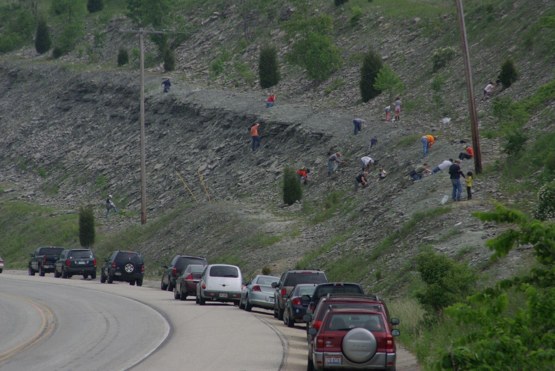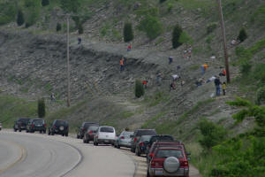 It was another great day in May for the Dry Dredgers to return to their favorite Richmondian site - a large road cut in Indiana. The site has two great trilobite layers and nice crinoids are also found. Today was no exception. This site at the top end of the road, exposes the Liberty formation and at the bottom end, the Waynesville formation. At the very top and very bottom are found the Lower Whitewater and the Arnheim formations, respectively. Here are some pictures of the site and fossil hunters.