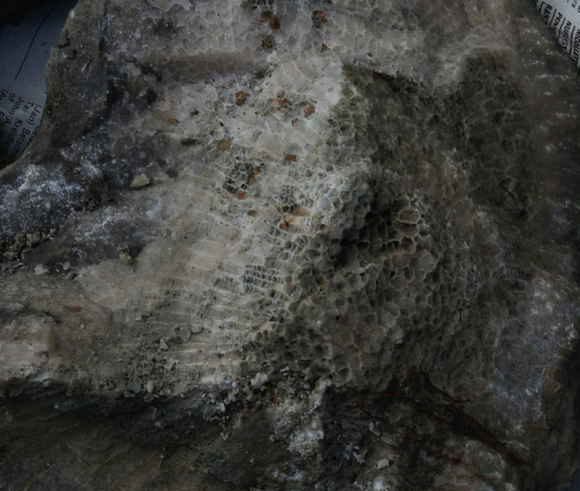 We also found a second kind of stromatoporoid (name unknown), shown below in this box. (next 2 pics)