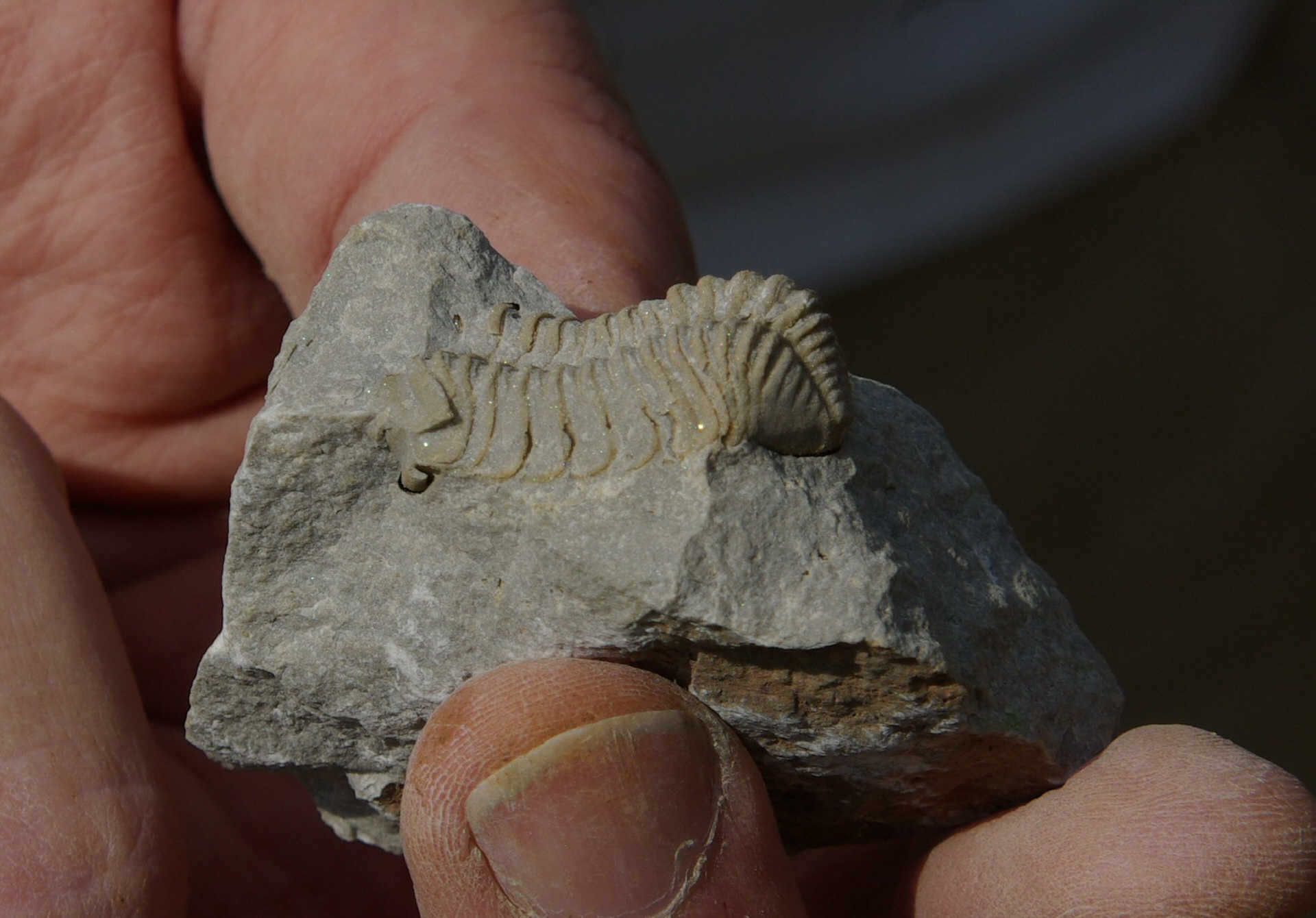 The third site we visited that day exposed the Silurian. There we armed ourselves with hammers and safety goggles to extract Silurian trilobites from the dolomite.
