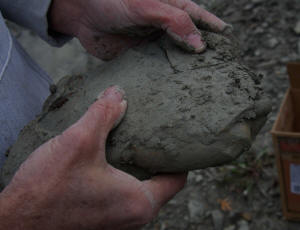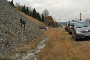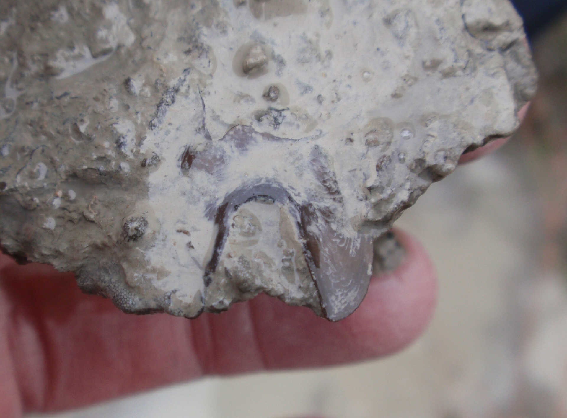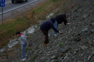 It was a dreary, rainy Saturday morning. The night before at the Dry Dredgers meeting it seemed clear no one was coming to the field trip the next day because it was raining at the time and the rain was forecasted to continue throughout the weekend. Bill Heimbrock presented slides at the Friday night meeting of the fossils that can be found at the field trip. He urged everyone to go out to the site that morning rain or shine because we could get lucky and the rain may stop.