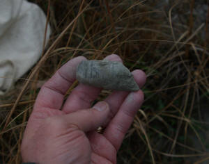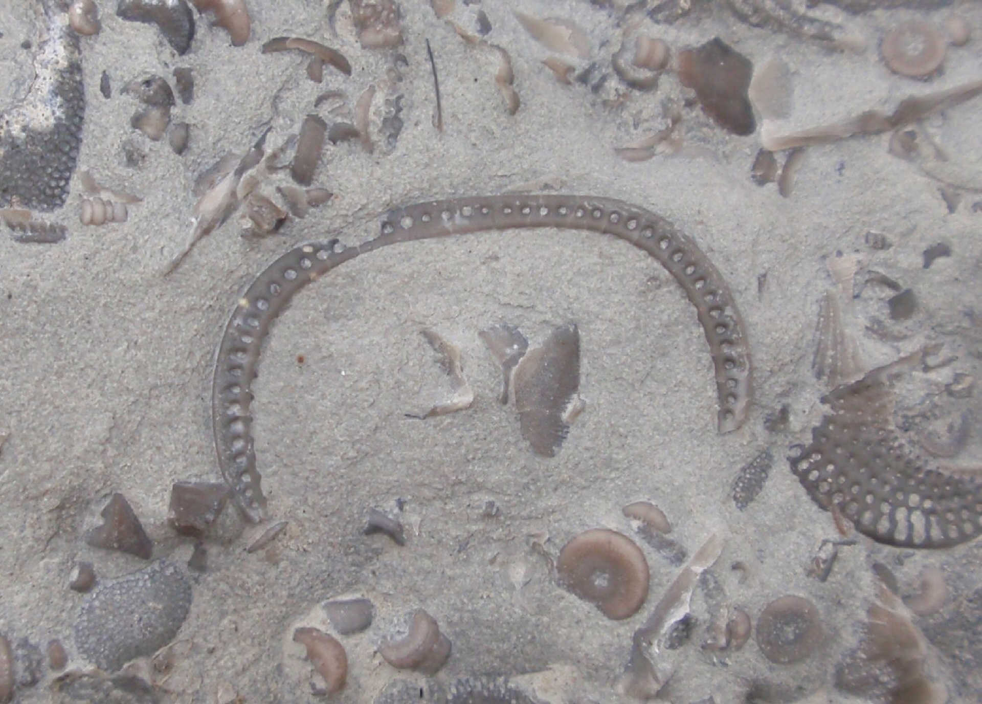 Cryptolithus fragments known as "lace collars" were common on this site.