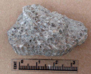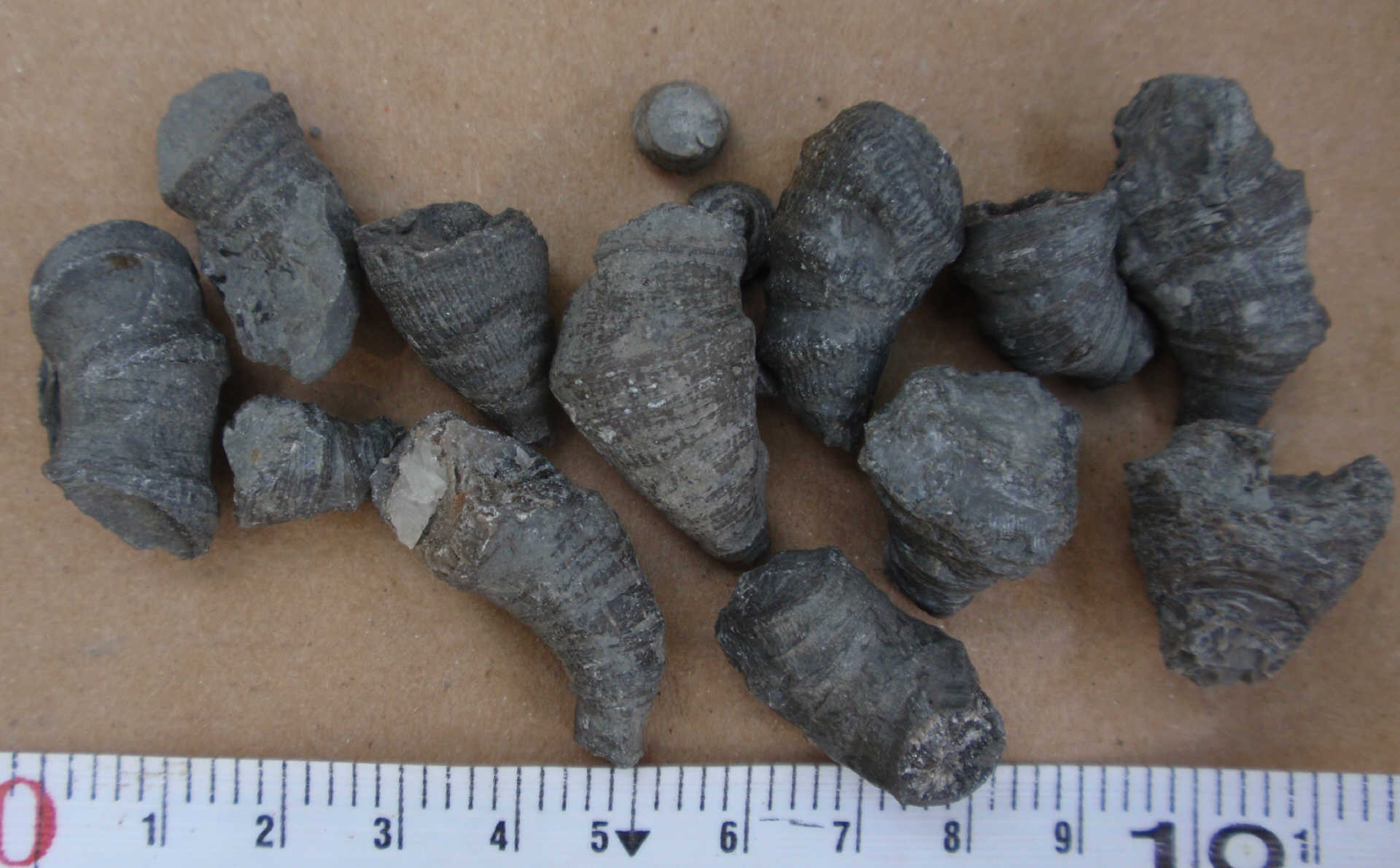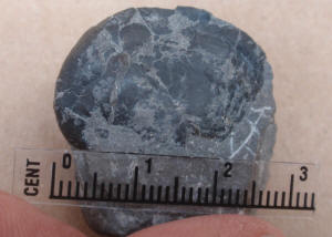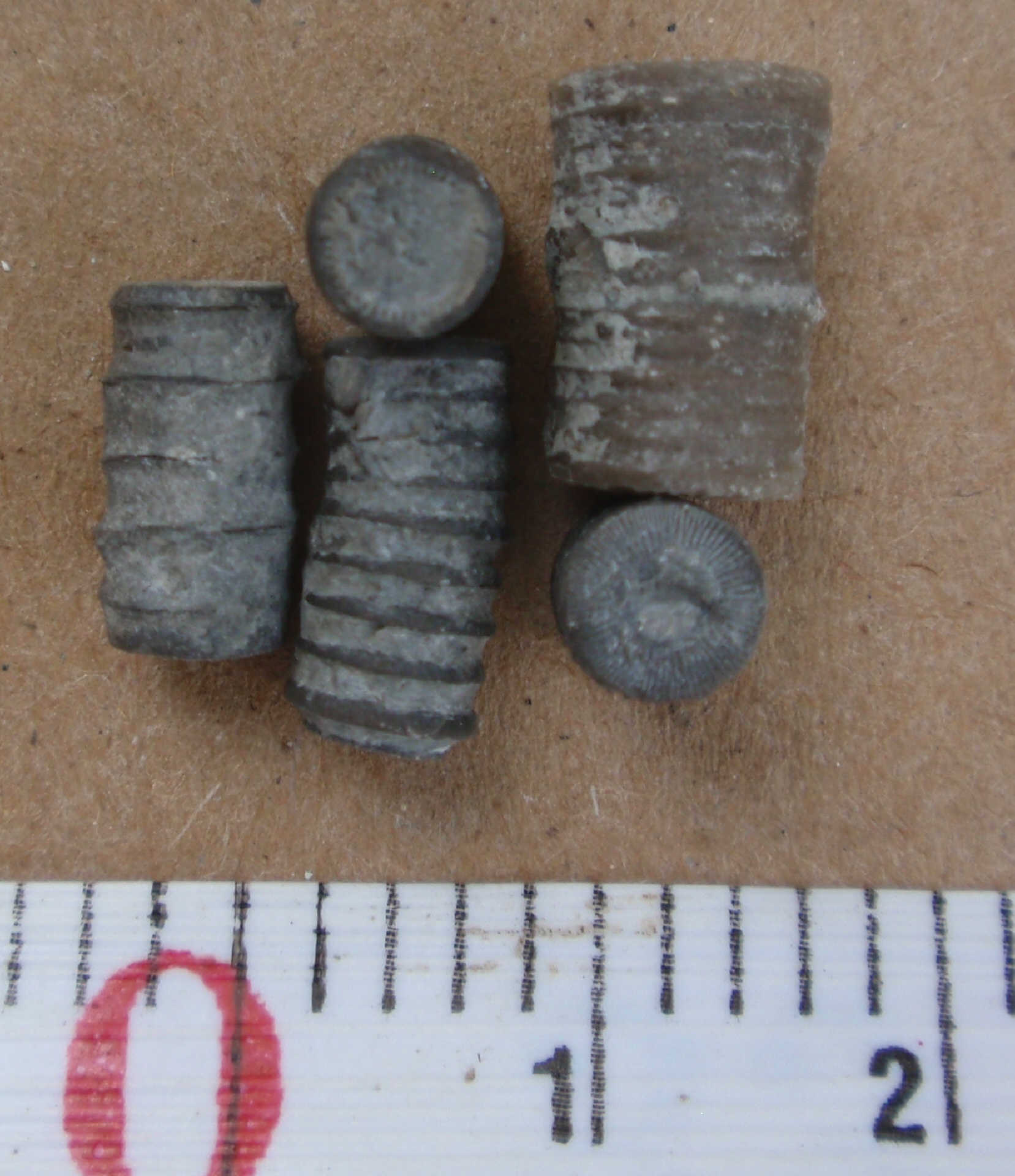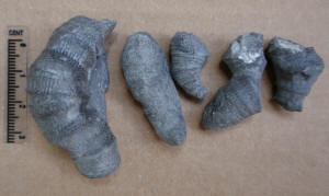 Articulated crinoid stems and possibly calyx. Found by Ron Fine.