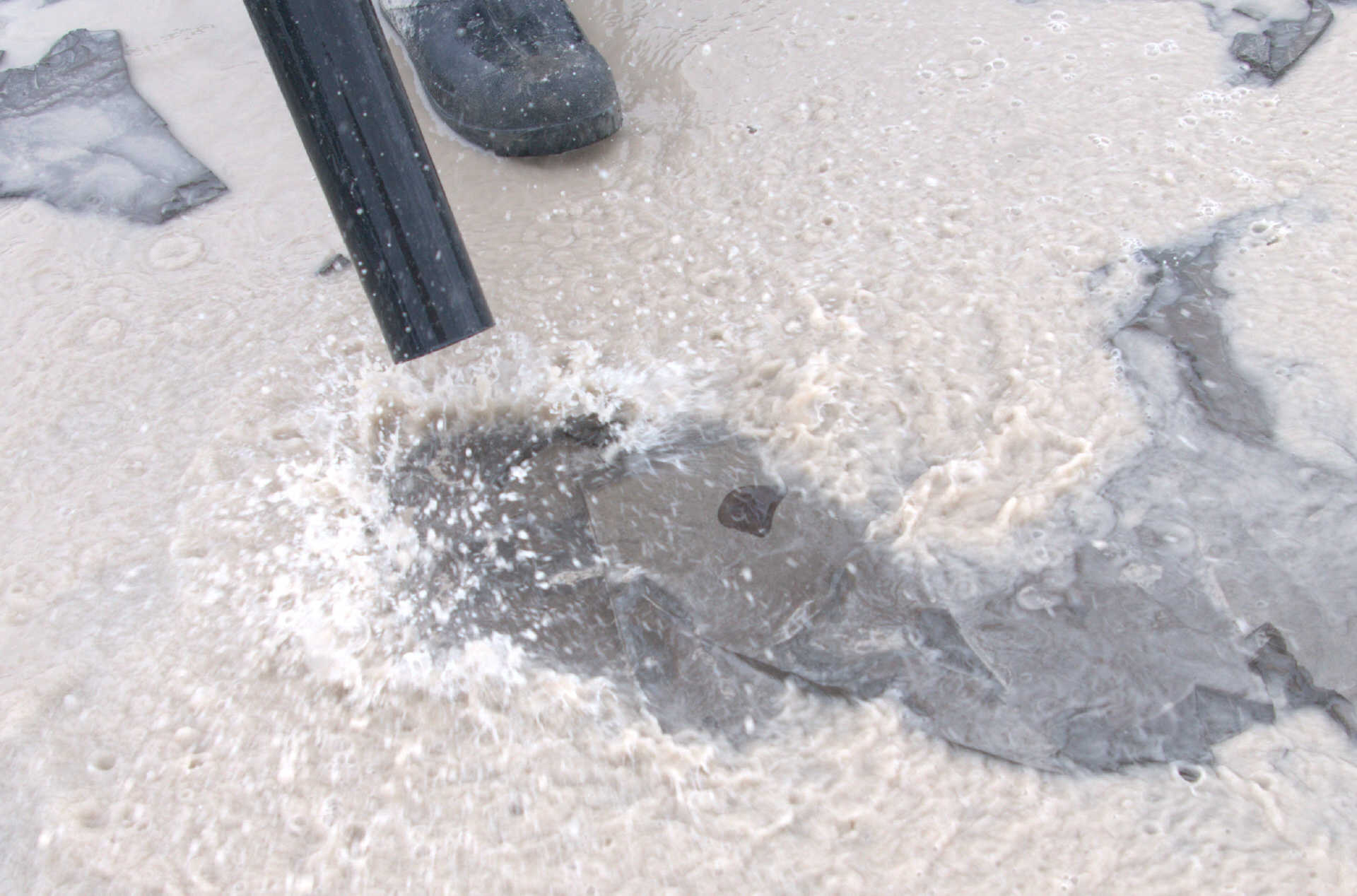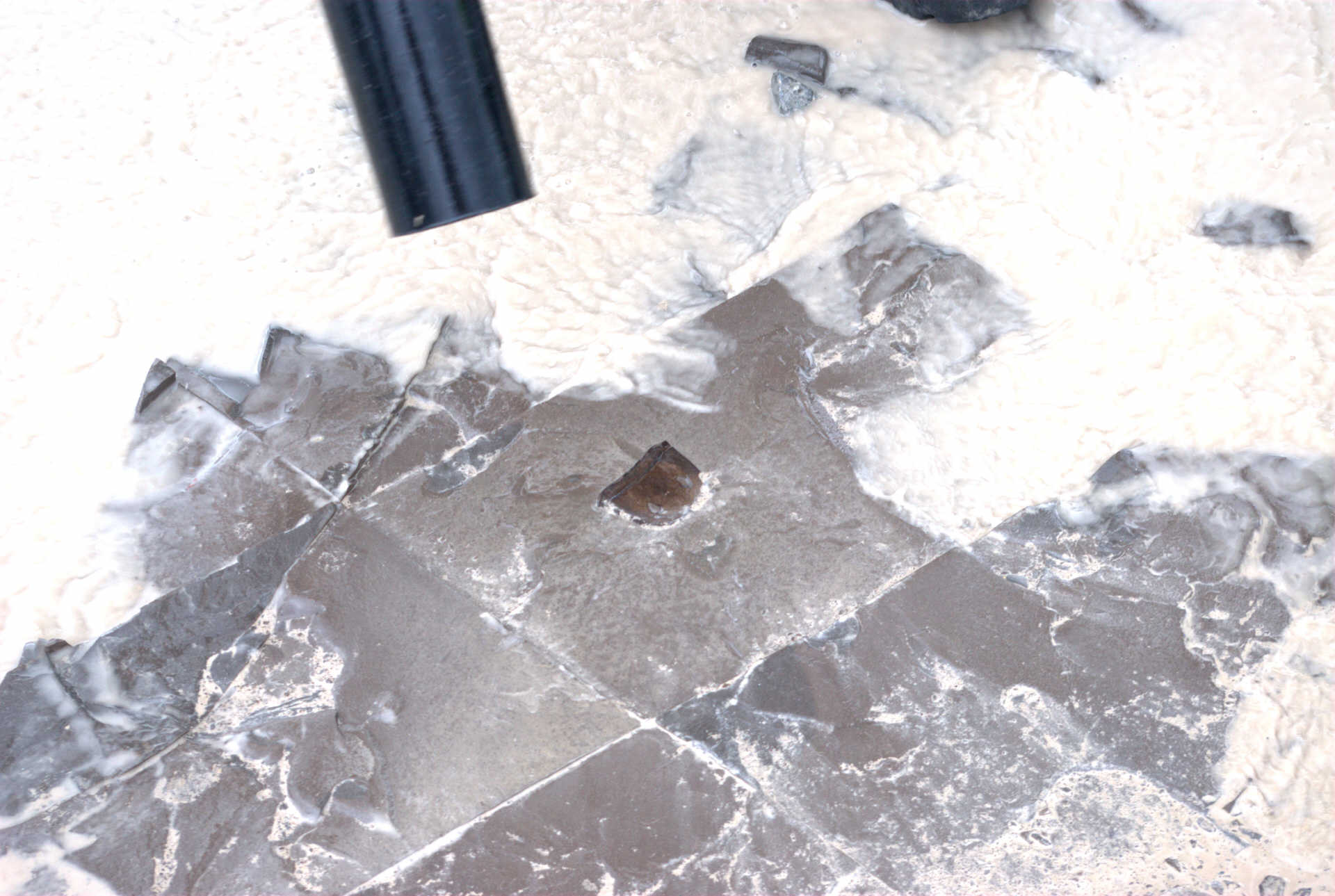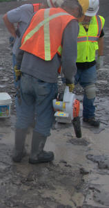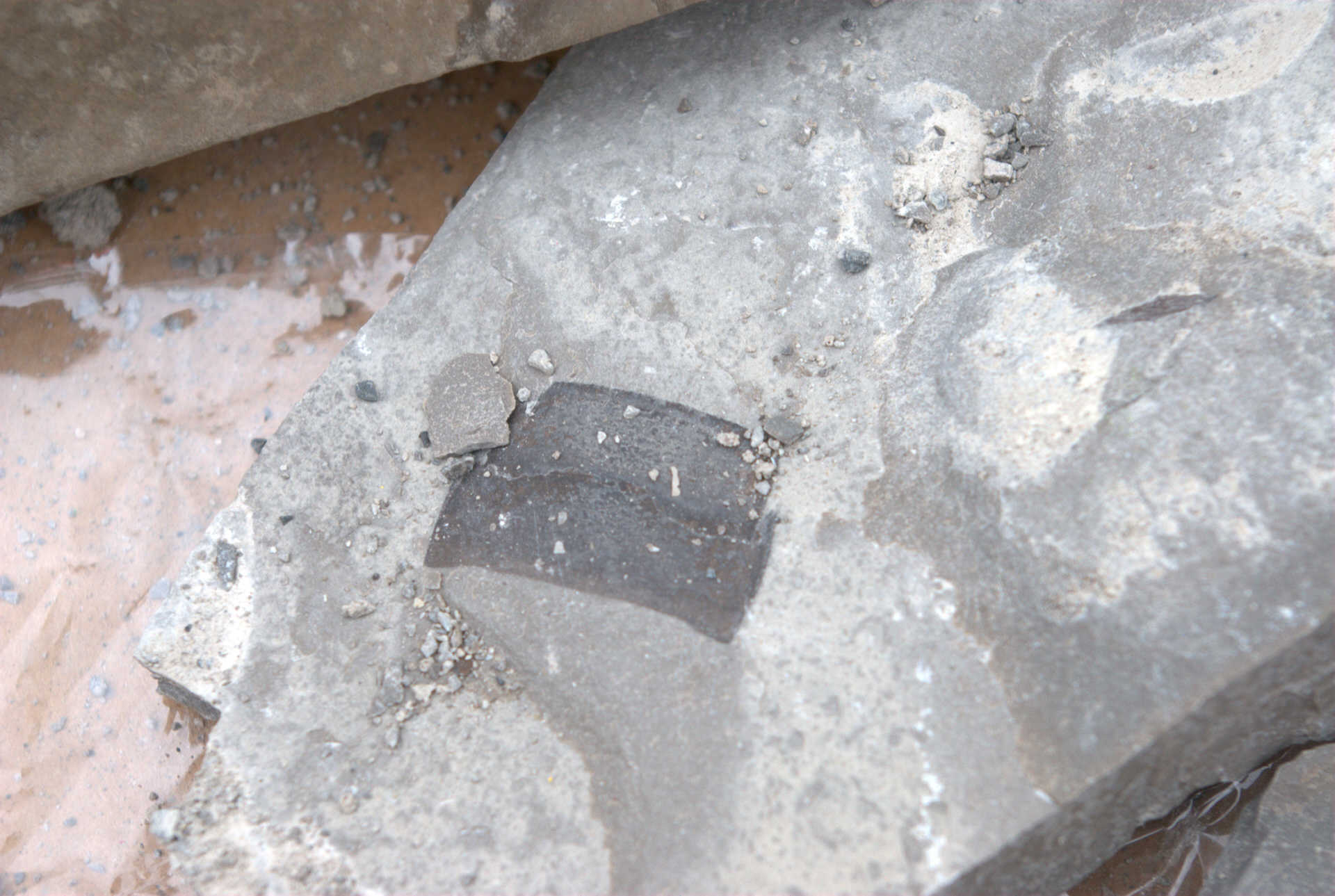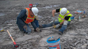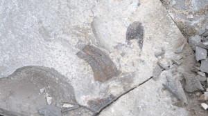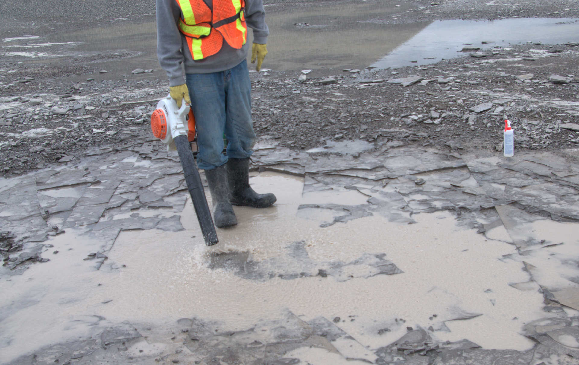 Malcolm was also a really big help in uncovering at least 5 Eurypterid heads the previous week and leaving them for us to dig out. He did not count on it raining and the ditches filling with water. So he brought is leaf blower, which worked excellently for temporarily dispersing the water while we dig. Malcolm was patient and held the leaf blower until we had all 5 heads extracted. He advised us along the way as to where is best to break the shale and which tool to use. Here are ome photos of the Eurypterid heads and their extractions.