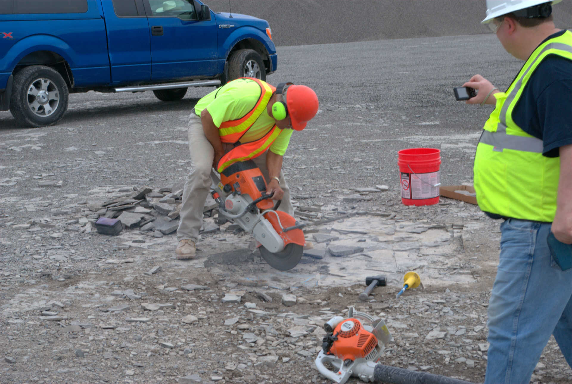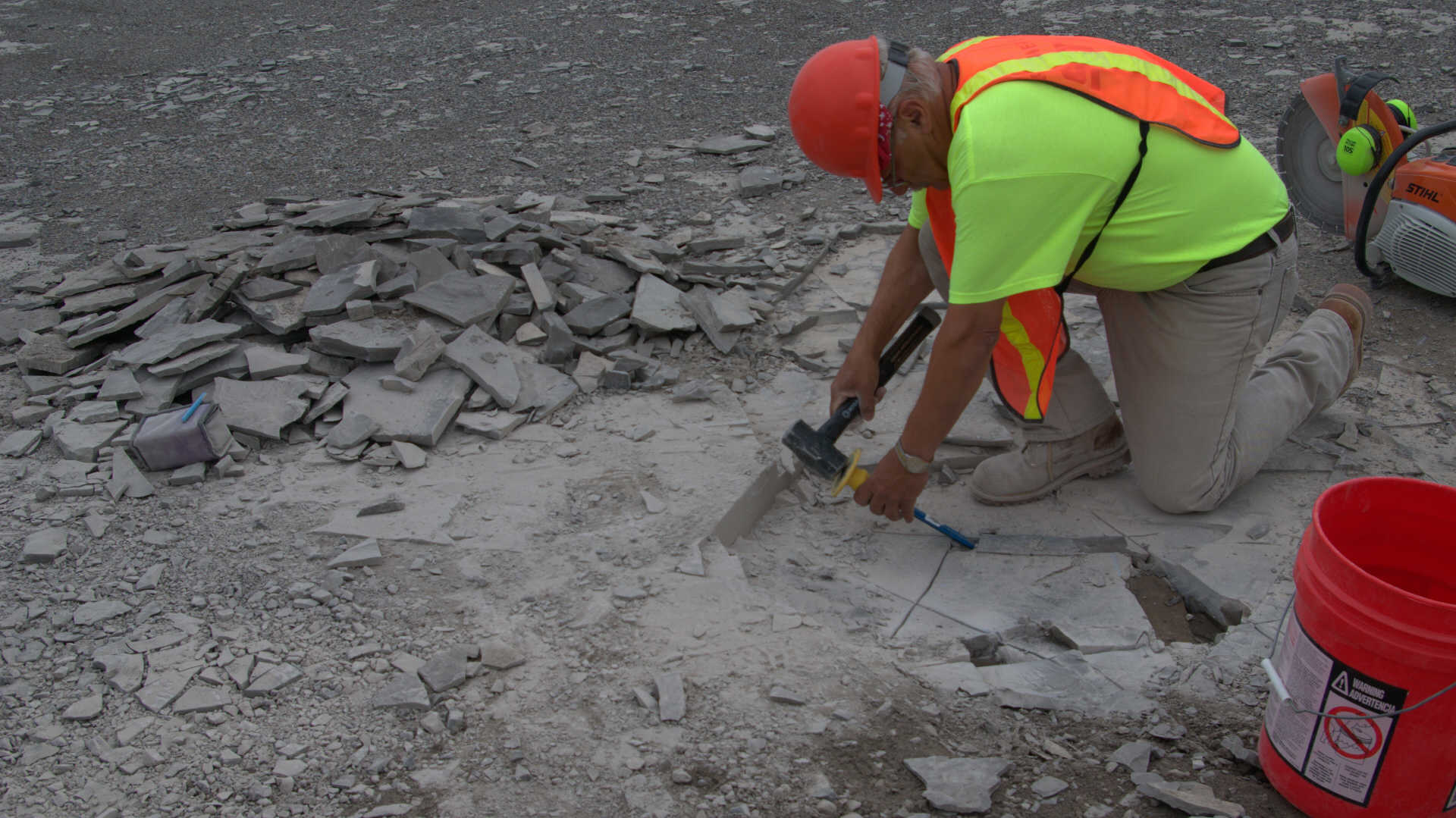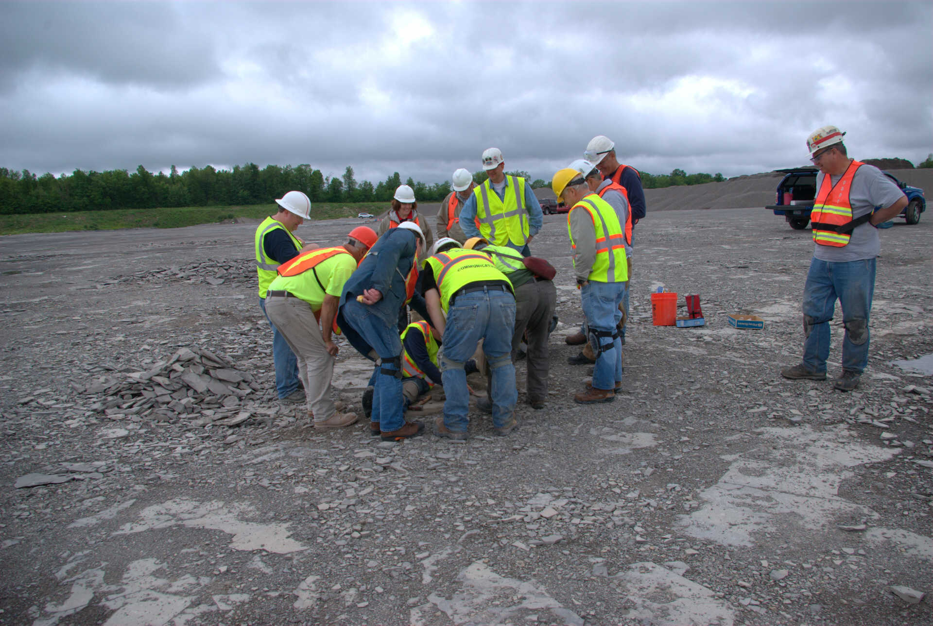 Here is John Spina of the Buffalo Geological Society helping to extract Ron's