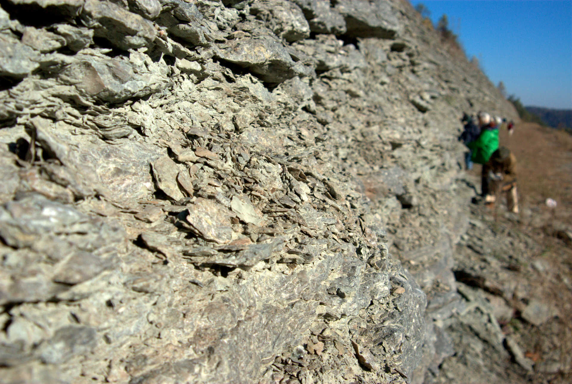 It was late October. The morning was chilly and windy but the sun was out most of the time and we began working on the sunny side of the road cut.