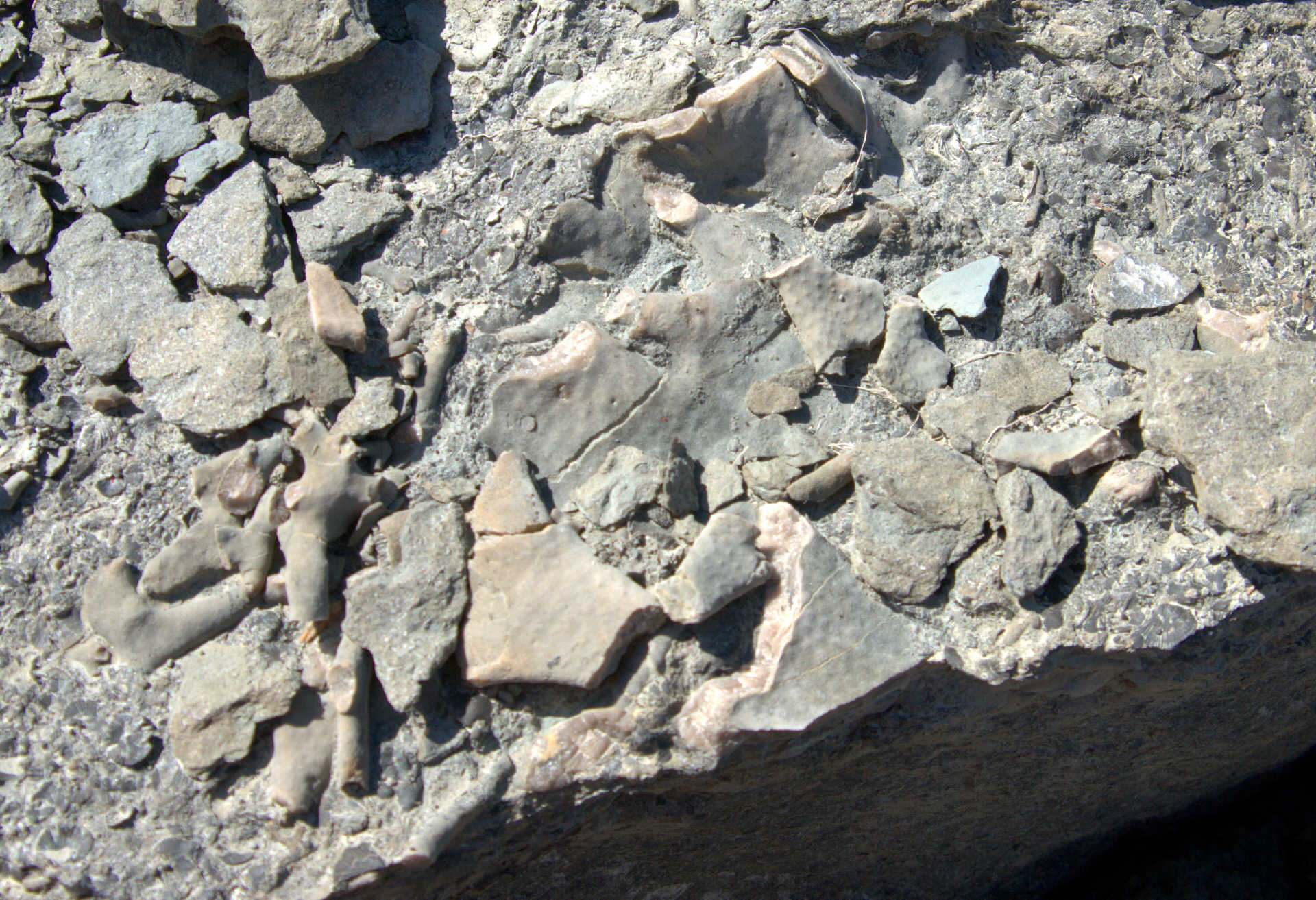 shingled and pushed around in the now-lithified mud. The layer indicates a large