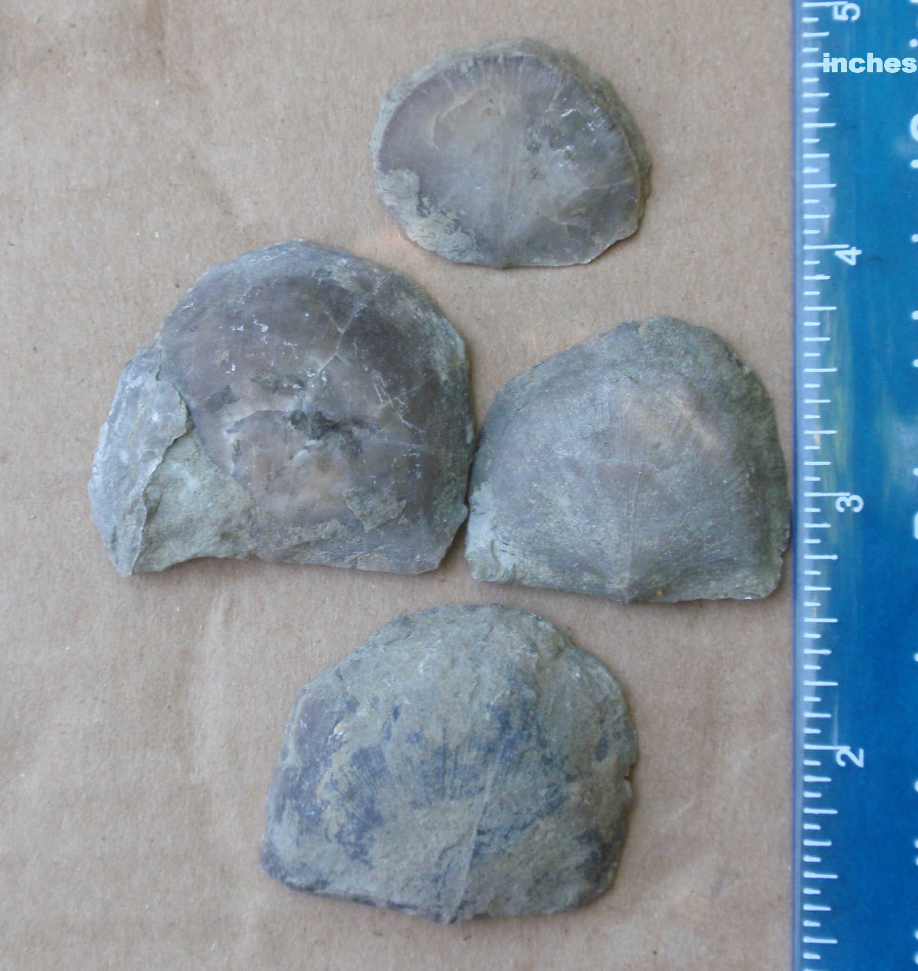 On the surface of these Rafinesquina, we found lots of the inarticulate brachiopod, Petrocrania scabiosa. (next 4 pics)