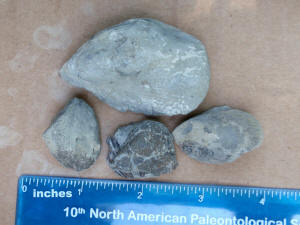 The other brachiopod for which the "Ponderosa Ranch" was named is Vinlandostrophia ponderosa. We did not find a bonanza of these brachiopods this time. But good numbers were taken home by all. (next 4 pics).