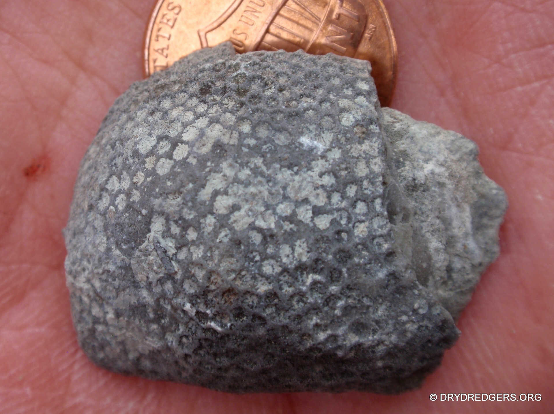 The trepostomate bryozoan below had encusted a clam. You can still see the clam