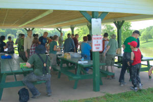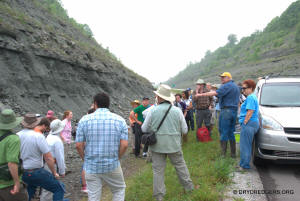 It certainly was a meeting of the minds, which is precisely one of the goals of the conference. Here's Dr. Carl Brett (UC) discussing details of the site with Dr. Tony Martin of Emory College of Arts and Science while numerous onlooking amateur paleontologists listen and learn.