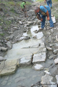 was pretty muddy and slippery. So we didn't climb up on the ledges to fossil