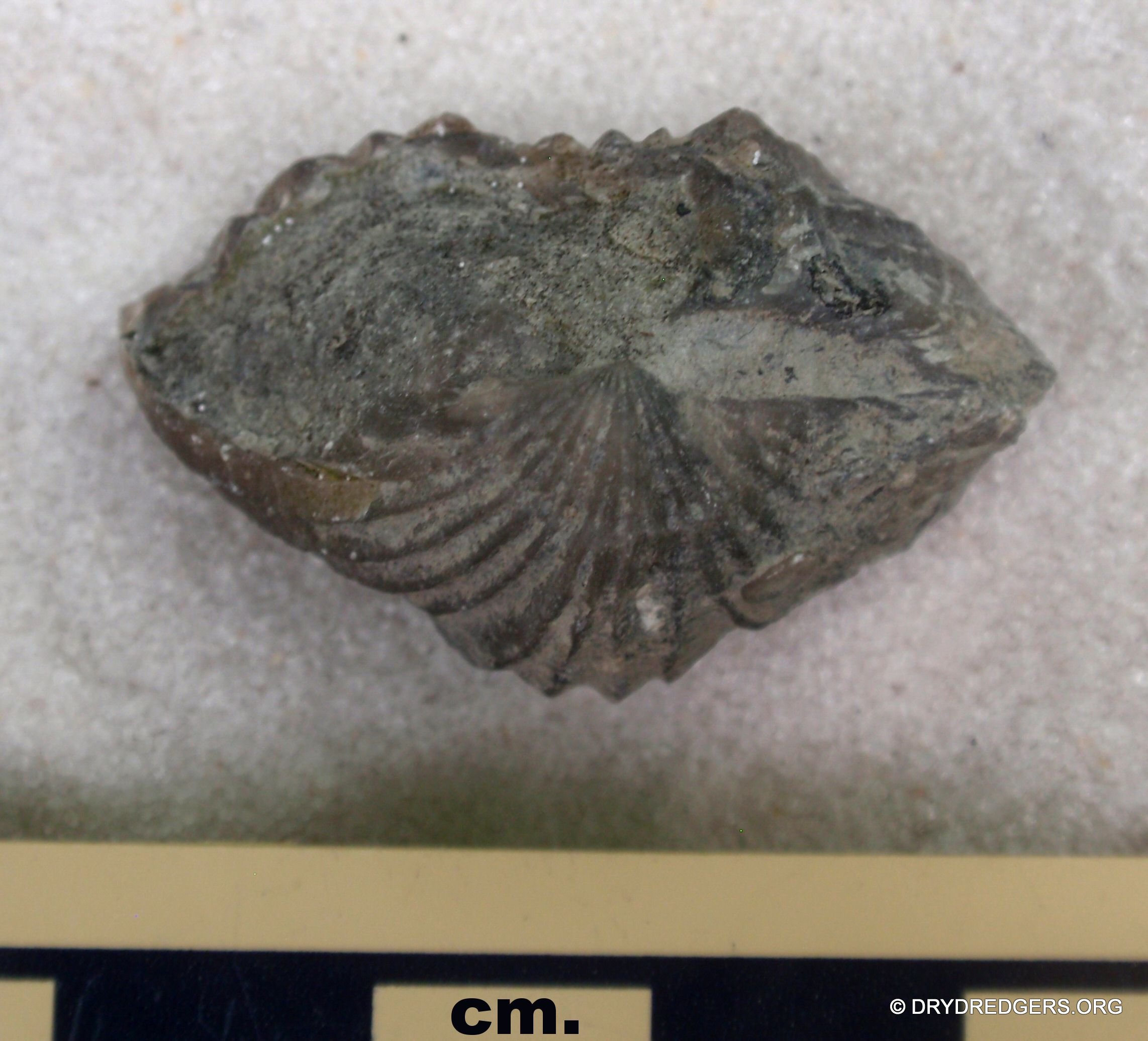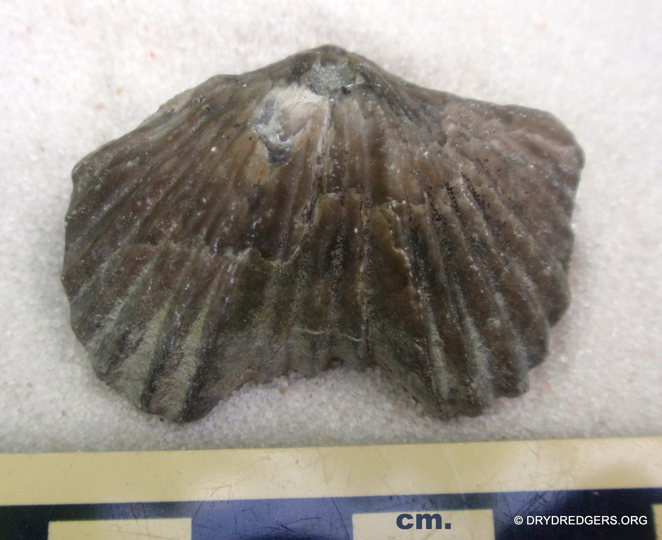 not so well preserved, but the ribbing of the shell is still visible.