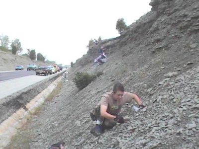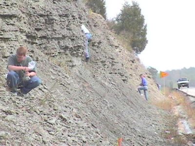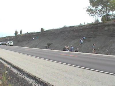 The site exposes the Whitewater formations, including the Saluda. It is a road cut with steep slope with lots of loose fossils that have fallen down from the ledges above. The cut is found on both sides of the road, but, oddly, the weathering is much different on one side of the road than the other. As you can tell from these pictures, one side is preferred for collecting.
