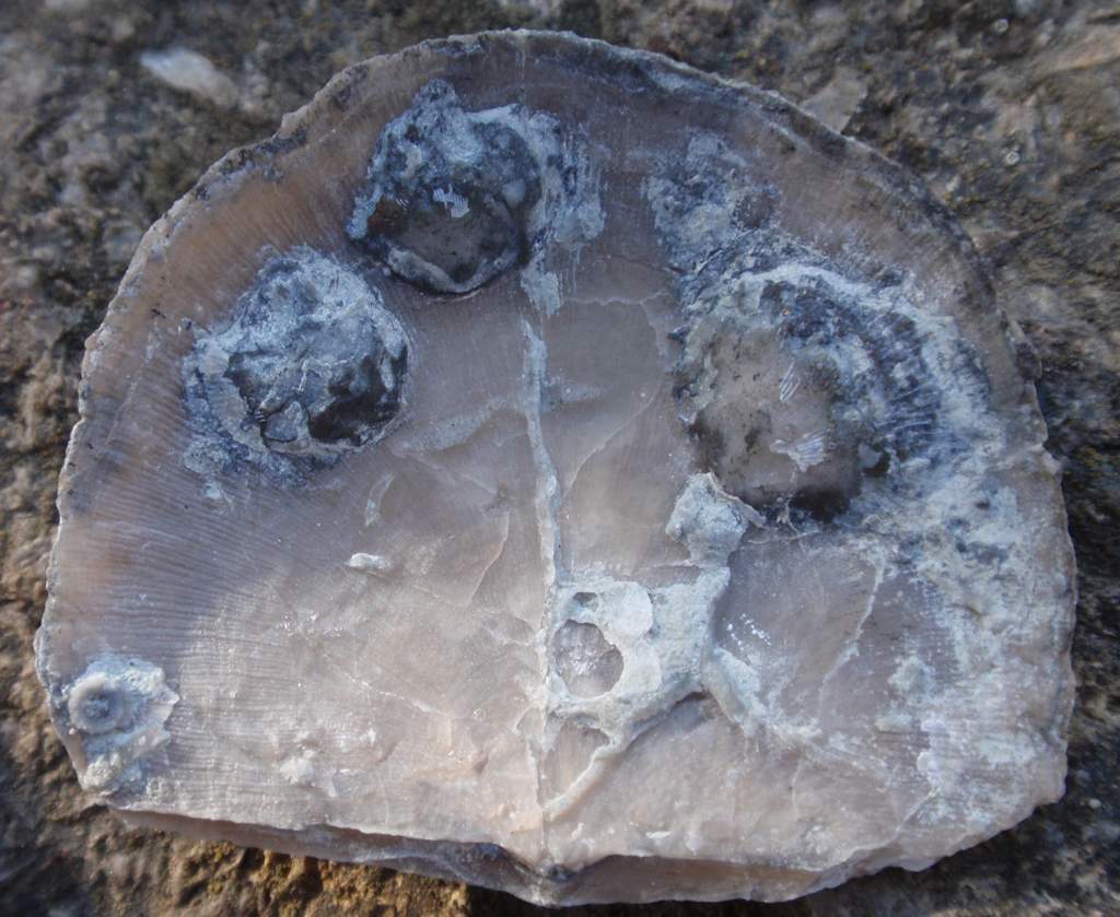 Well, I found so many of these in the same horizon, that I thought it would be a good idea to photograph them to supplement the photos of Schizocrania on the Dry Dredgers Brachiopod web page.