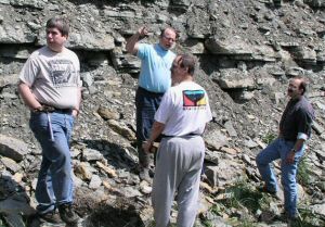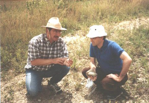 Shown above, Dr. Greg Schumacher with Ohio Geologic Survey collaborates with Bill Heimbrock of the Dry Dredgers on a study of trilobite epizoans.